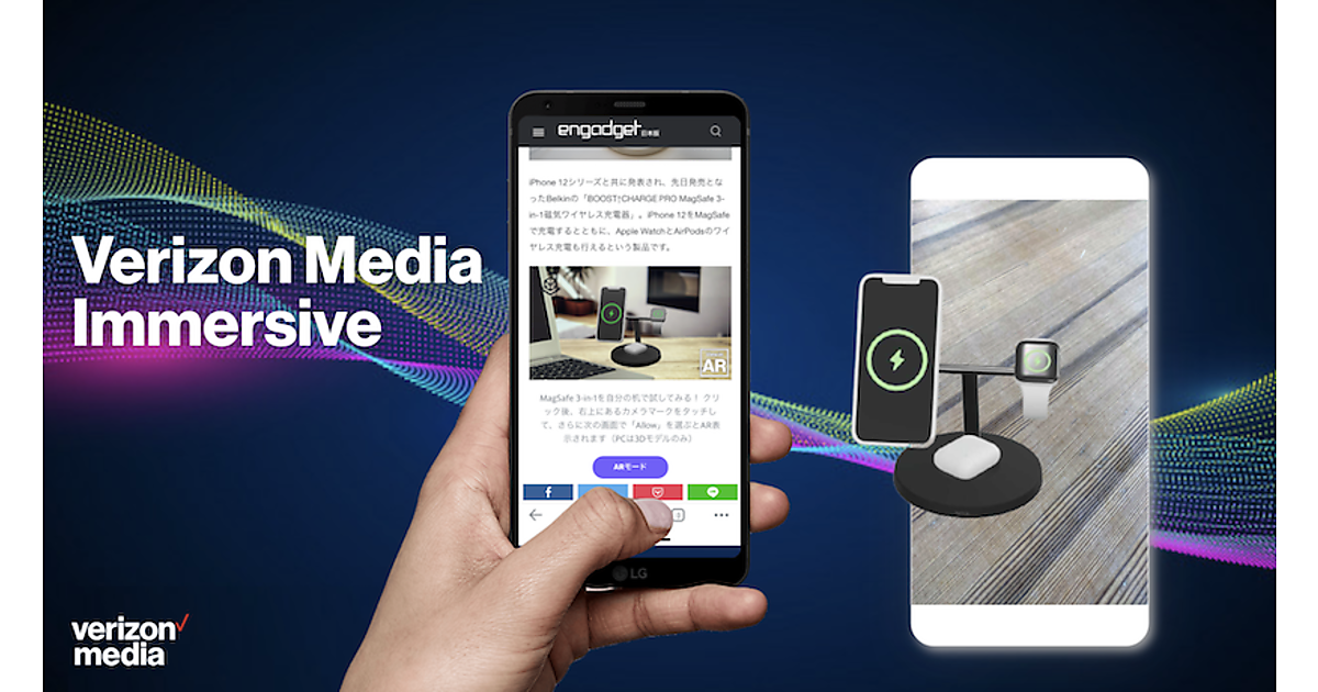 米国通信大手、ベライゾンのメディア部門の日本法人でメディア・広告プラットフォーム事業を行うベライゾンメディア・ジャパンは、没入型体験を使った広告記事の提供を始めた、と3月25日発表した。AR(拡張現実)や3Dで製品を表現して関心を高め、認知度向上につなげられる。第1弾で同社が運営するオンラインメディア「Engadget日本版」に導入した。