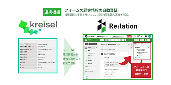 Re:lationは、問い合わせに複数人で当たることを前提にした情報をチームで共有できるコミュニケーションサービスで、二重返信防止や未対応案件がわかるステータス管理と承認機能を備えており、対応済みや漏れを未然に防ぐ。クライゼルがRe:lationとシステム連携することで、タイムライン機能で過去のやり取りをワンクリックで確認したり、管理画面で返信文を作成して送信したりするなど効率的な顧客対応が実現する。