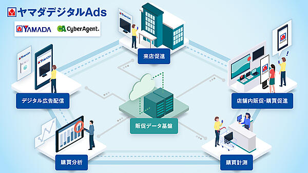 インターネット広告事業のサイバーエージェントと、家電量販店最大手のヤマダホールディングス傘下のヤマダデンキは、ヤマダデンキの販促DX(デジタル変革)で業務提携した、と4月1日に発表した。消費者の購買体験の向上を目的に、ヤマダデンキが保有するデータを統合した販促データ基盤を共同開発して、独自の購買データを活用した公式広告メニュー「ヤマダデジタルAds(アズ)」の提供を4月から始める。