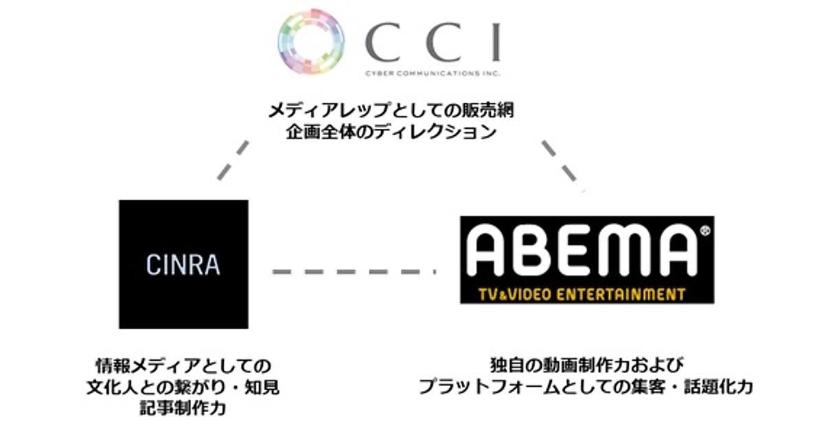 CINRAが企画した3分か5分のオリジナルミニ番組を、「ABEMA」の編成番組枠とCM枠で配信する。カルチャー系や若年層に強みを持つCINRAの企画・制作力と、動画配信サービスのABEMAの集客・話題化力にCCIの販売力を集結する。企業は配信ターゲットの視聴者に質の高いマーケティング効果が期待できる。広告商品はCCIが独占販売する。