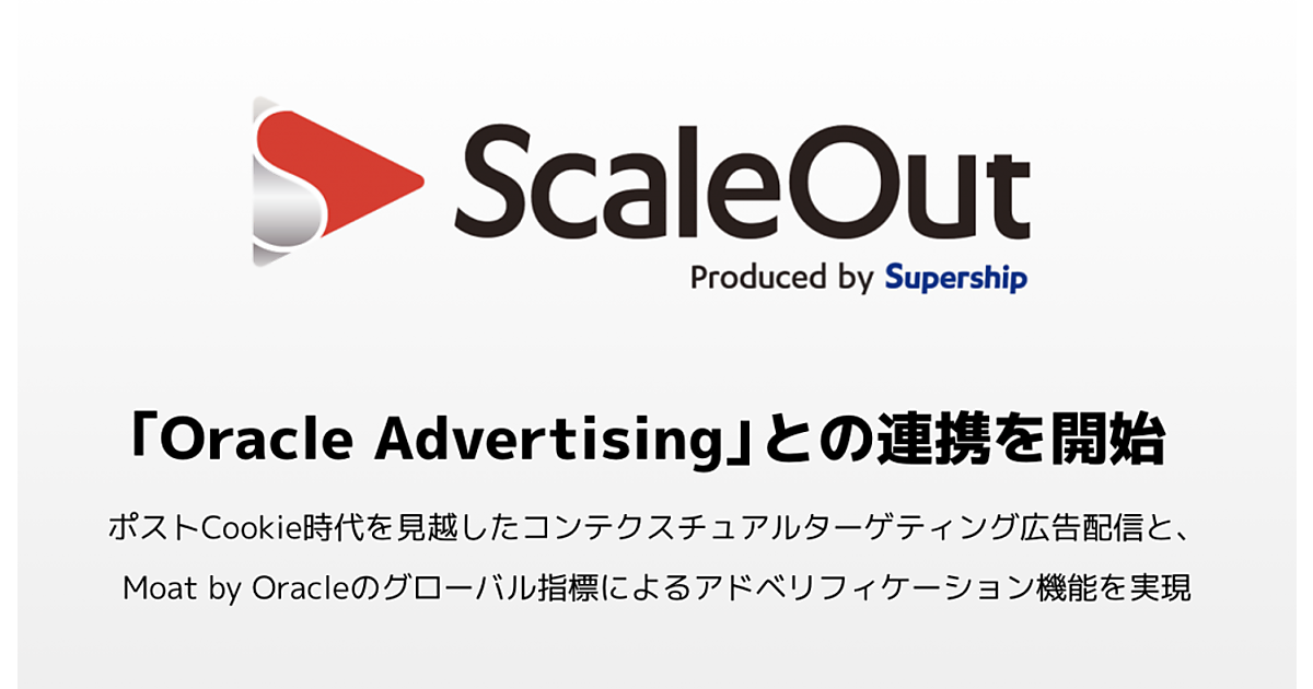 KDDIグループでデジタル広告・データコンサルティング事業のSupershipは、同社のDSP(広告主向けプラットフォーム)「ScaleOut(スケールアウト)DSP」が、米国Oracleのブランドセーフティ(ブランド毀損の防止)ソリューション「Oracle Contextual Intelligence」と、マーケティング分析スイート「Moat by Oracle」で効率的に広告支出する「Prebid by Moat」と連携した、と4月16日に発表した。ポストCookie時代への対応を強化した。