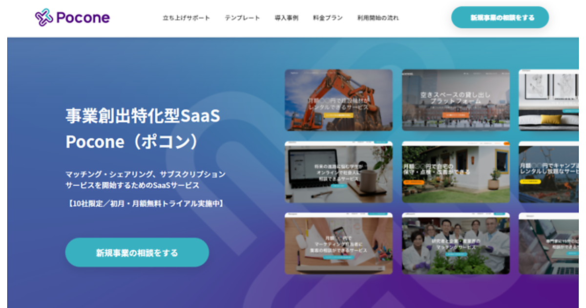 インターネット広告事業のデジタルホールディングス傘下でインキュベーション(事業創出・創業支援)事業のオプトインキュベートは、事業創出特化型SaaS「Pocone(ポコン)」を4月19日に始めた、と同日発表した。マッチング、シェアリング、サブスクリプション(定額制)型などの新規事業のプラットフォームがノーコード(プログラミング不要)で立ち上げられ、最短1日で構築できる。