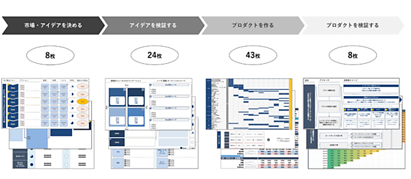 独自開発のテンプレートを活用することで、マッチング、シェアリング、サブスクリプション型のプラットフォーム構築を容易にし、新規事業の早期創出をコストを抑えて実現する。アイデアを事業にするために必要になるプロセスや共通項目を約100枚のフレームワークにテンプレート化した。オプトインキュベートが手掛けるデジタル分野での新規事業立ち上げの知見を基にしている。