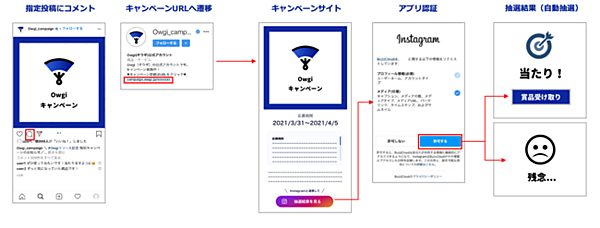 ソーシャルメディアマーケティング事業のサイバー・バズは、同社のSNS運用管理ツール「Owgi(オウギ)」に、SNS即時抽選型キャンペーン(インスタントウィン)機能を加えた、と4月22日発表した。「Twitter」「Instagram」「LINE」で同時に即時抽選型キャンペーンが実施可能。キャンペーン抽選ページはOwgi上で簡単に作成でき、応募や抽選の状況もリアルタイムに分かる。