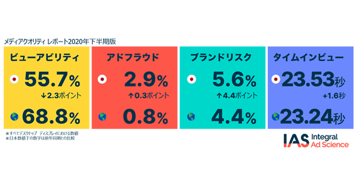 Integral Ad Science(IAS)は、アドフラウド、ブランドセーフティ、ビューアビリティについて最新状況を指標化した調査「メディアクオリティ レポート2020年下半期版」を発表した。