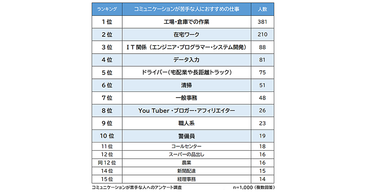 “コミュ障”男女1,000人にアンケート、お勧めの職種1位になったのは?【Biz Hits調べ】