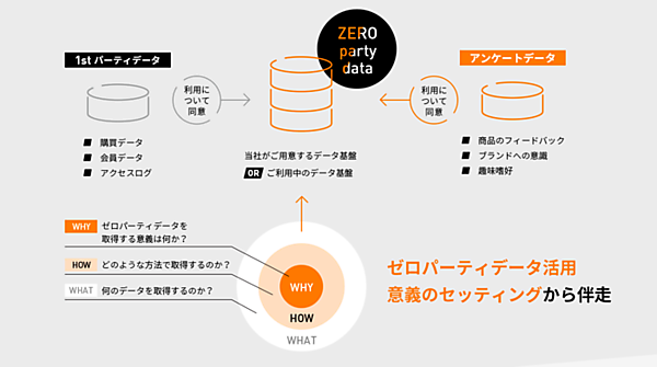 EU一般データ保護規則(GDPR)の施行をはじめ、プライバシー規制が世界的に強化される中、ゼロパーティデータが注目されていることから展開する。ゼロパーティデータは、消費者のプライバシーを守りながら特性を知るデータ収集が可能な方法とされる。開始したサービスは、企業のゼロパーティデータ構築からデータを生かしたマーケティング戦略・施策の提案までを支える。