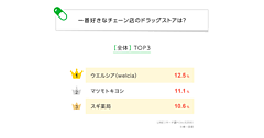 関東・関西・東海と3つのエリアでわけると、関東は1位「カインズ」10.6%、2位「イオン」9.8%、関西は「コーナン」22.7%、2位「イオン」16.6%、東海は1位「イオン」29.4%、2位「スギ薬局/スギドラッグ/ドラッグスギ」9.3%となっている。各地域の競合進出などの度合いにより特色があらわれているが、やはり創業地である東海で「イオン」が強い傾向が見てとれる。