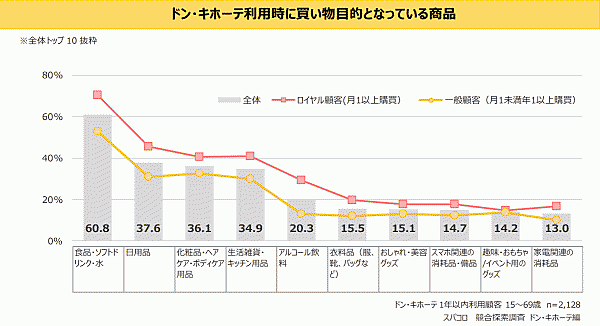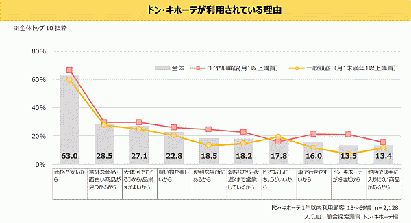 スパコロは、「競合探索調査 ドン・キホーテ編」の結果を発表した。「ドン・キホーテ」の競合探索を主目的に、15歳~69歳4,169名から回答を得ている。