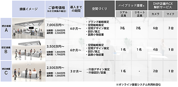 大日本印刷(DNP)は、実店舗を対象に顧客の体験価値(CX)や満足度を高める「次世代店舗づくり支援パッケージ」の提供を5月26日に始めた、と同日発表した。次世代店舗の構築と運営をサポートし、来店客の購買意識(インサイト)が分析できる店舗や体験型店舗の開設・運用を進める。店舗規模の大・中・小に応じた基本フォーマットを用意した。