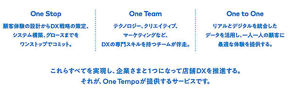 グローバルデジタルエージェンシーの電通アイソバーは、店舗DX(デジタル変革)ソリューションの新サービス「One Tempo(ワンテンポ)」の提供を始める、と6月4日に発表した。DXプロジェクトの立ち上げから課題抽出、設計、導入、運用支援をワンストップで実現する。EX(従業員体験)とCX(顧客体験)の2つを重視して、従業員がデジタルに積極的に取り組む仕組みと、顧客との新たな関係をオンラインとオフラインで構築する。