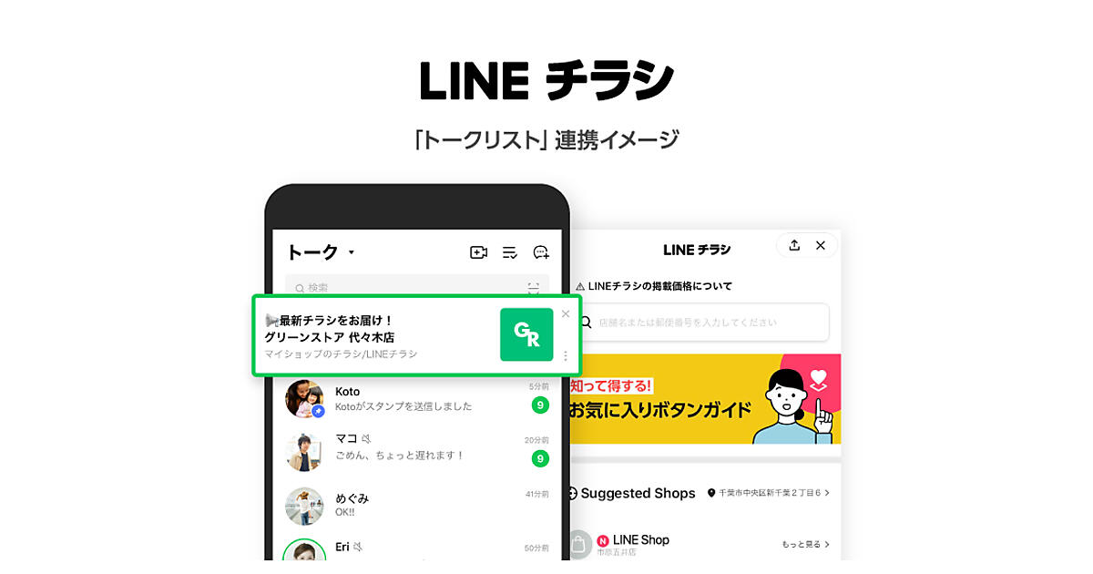 LINEは、同社のコミュニケーションアプリ「LINE」を活用したデジタルチラシサービス「LINEチラシ」で、LINEのトークタブの最上部にある「トークリスト」との連携を始めた、と6月24日発表した。LINEチラシを導入している店舗のマーケティング活動最大化が狙い。トークリストはLINEの中でもアクティブ率が特に高く、効果が見込まれるという。