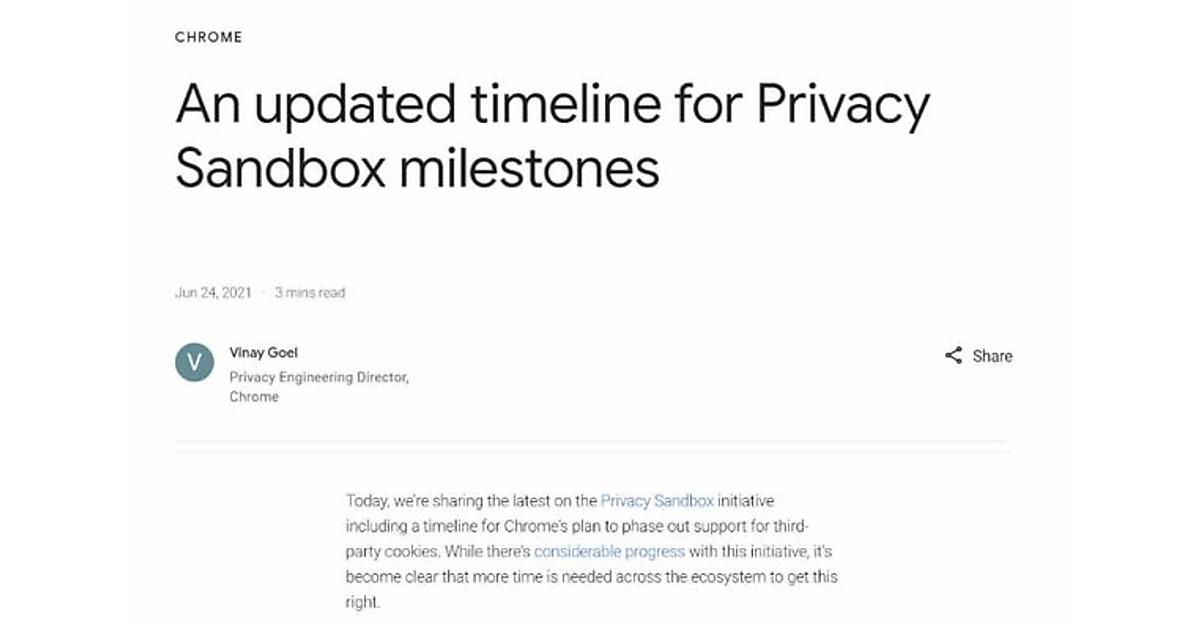 当初は2022年のサードパーティCookie終了を目指していたが、「エコシステム全体で取り組みを正しく進めるため、さらなる時間が必要」とする。代替技術には様々な提案がなされているが、さらなる議論や規制当局等との調整、移行準備などを理由に延期する。