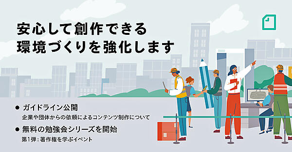 また、noteはオンライン勉強会シリーズ「安心創作勉強会」を開始し、7月15日に第1回「クリエイターが知っておきたい著作権」を開く。弁護士で独立クリエイター/アーティスト専門のバックオフィスパートナー企業のCiroci(シロシ)の山田邦明氏を迎えて、著作権の基本や創作時に知っておくべき具体的な考え方を伺う。参加は無料。