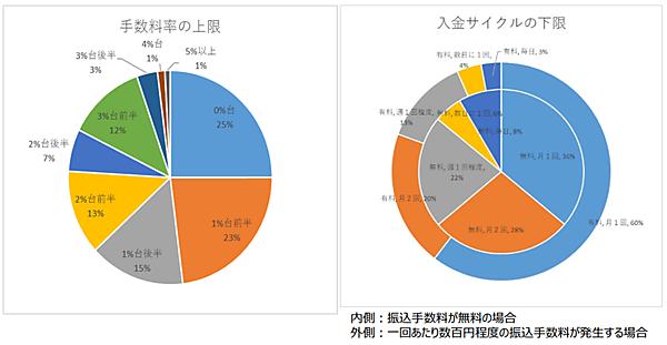 キャッシュレス決済の手数料を見ると、3%台前半が多いが、キャンペーンを多発していたことでコード決済はゼロ%も高い。一方上限について聞くと、「2%台まで」という回答が全体の8割を超えていた。入金サイクルの下限は、「月1~2回」を対応可能とする店舗が多かった。