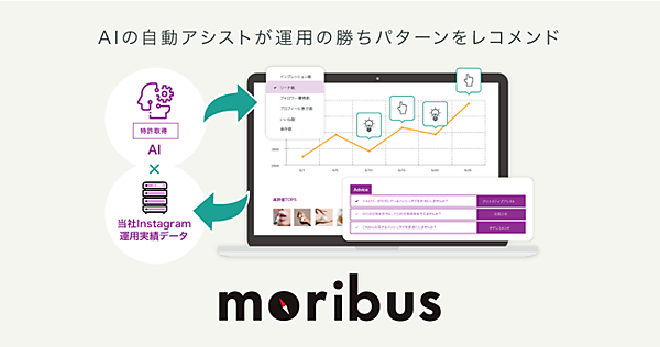 AI(人工知能)関連技術開発・インサイト(潜在ニーズ)マーケティング事業のAIQ(アイキュー)は、Instagram運用ナビゲーションツール「moribus(モリバス)」の提供を始めた、と7月1日に発表した。「Instagram」でSEO(検索エンジン最適化)を可能にした分析ツール「AISIGHT(アイサイト)」で培ったデータを基に、最適なInstagramの運用方法をAIがアシストする機能を追加して進化させた。