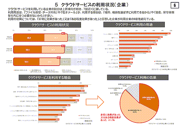 - 企業におけるクラウドサービスの導入割合が、7割近くまで上昇した。
