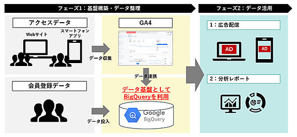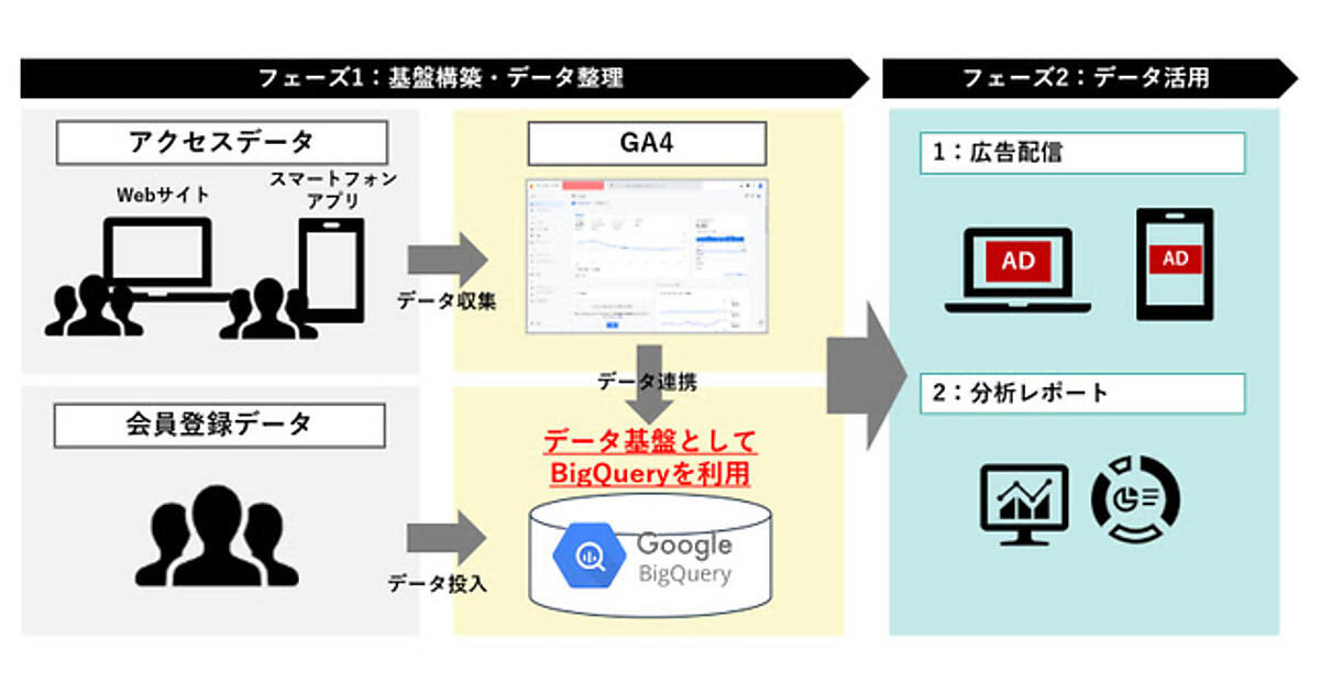 「媒体社向けデータ基盤構築支援サービス」では、GA4を活用したデータ基盤構築からターゲティング広告、分析レポートなどの広告商品を開発し、媒体社の広告ビジネス拡大を支援する。「広告主向けGA4新規導入・活用支援サービス」では、GA4の新機能活用したKPI(重要業績評価指標)策定やデータ計測設定の代行、データマーケティング施策の活性化、クッキー規制に影響されないGA4データ蓄積を提供する。