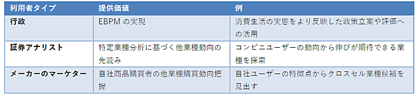 新サービスによって、全体消費や業種業態別消費などのマクロ動向と、その内訳の消費実態が把握でき、他のリサーチと組み合わせてインサイト(潜在ニーズ)へのリーチが可能になる。3社は、2021年度中のサービス提供を目標に研究開発を進め、さらに消費者を理解する新しいリサーチ手法の開発やテストマーケティング、セールスプロモーションを実現するマーケティング・プラットフォームを構想しており、官民に幅広く提供する。