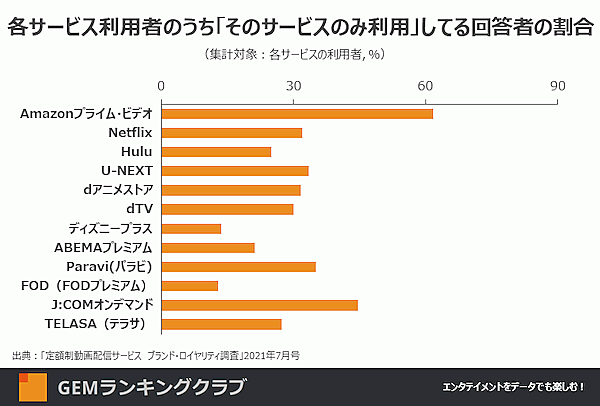 オリジナルコンテンツ・独占配信に強いサービスが存在感を示す。