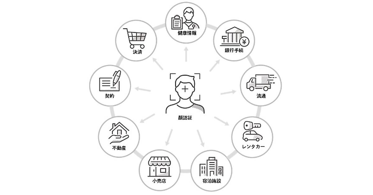 生体認証を活用した業界横断型のプラットフォームで、本人の同意のうえで登録した顔画像を共通のサーバーに蓄積し、日常生活の各シーンで手ぶら、迅速にサービスが利用できる環境を構築する。インターネットバンキングや銀行窓口の手続き、宿泊施設のチェックインやカーシェアリング、イベント会場の入退館や売店での決済などを想定する。