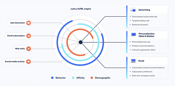 Lyticsは、マーケティング施策の実行を重視した新しいコンセプトのCDP。大量の顧客データがあってデータ連携・統合の労力が大きい、といった課題を解決する。顧客の行動データをリアルタイムに蓄積し、自然言語解析のAI(人工知能)技術を使用して顧客の行動に基づいたセグメントを作成。それぞれの顧客に合わせたキャンペーンが実施できる。