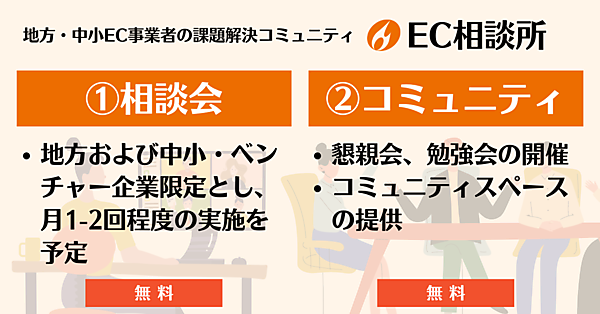 こうしたことからEC相談所を立ち上げた。EC展開での商品企画、生産、物流、販促、ブランディングなど各分野で活動する有識者と、アドバイスを受けたい企業のマッチングや、継続的にコンタクトできるコミュニティーとして運営。相談会を月1、2回程度実施し、コミュニティーでは懇親会や勉強会を行う。EC相談所への加入や相談会の応募は無料。