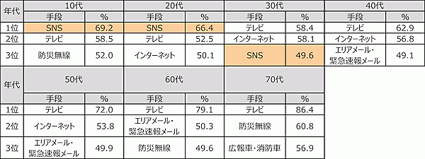 災害発生時のSNSでの情報取得、10代・20代はテレビを超える