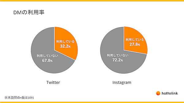 TwitterもInstagramもDMの利用率は30%前後だが、送信相手に明確な違い。