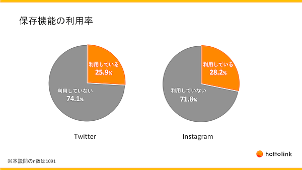 保存機能の利用率、Twitterは約26%、Instagramは約28%