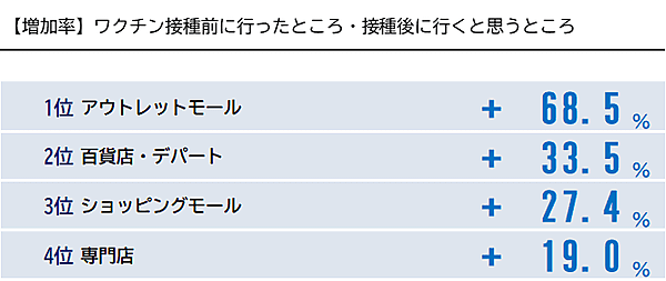 ワクチン接種後の変化:行くのはアウトレット、行かないのは海外旅行