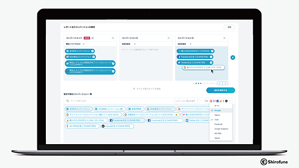広告運用ツール開発・販売のShirofune(シロフネ)は、広告運用自動化ツール「Shirofune」と連携した各社(サードパーティ)の計測ツールデータで主要広告プラットフォームの広告運用を最適化するサービスを提供する、と9月1日に発表した。連携済みの「Googleアナリティクス」に加えて、「アドエビス」「Adjust」のほか「Salesforce」「HubSpot」「Adobe Analytics」「広告主の独自開発ツール」にも順次対応する。