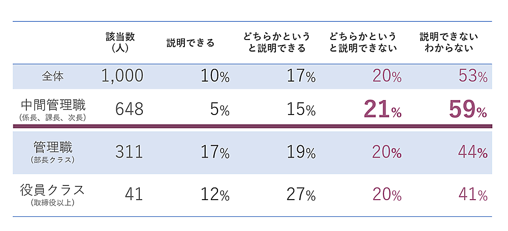 - 【調査対象】従業員規模1,000名以上の大企業の経営層および役職