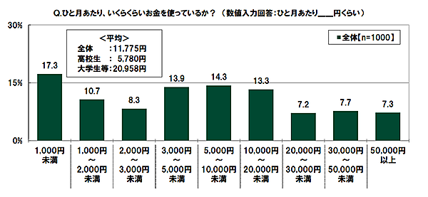 10代のお金の使い方:消費額、お金をかけたいこと、ネットサービスの課金額
