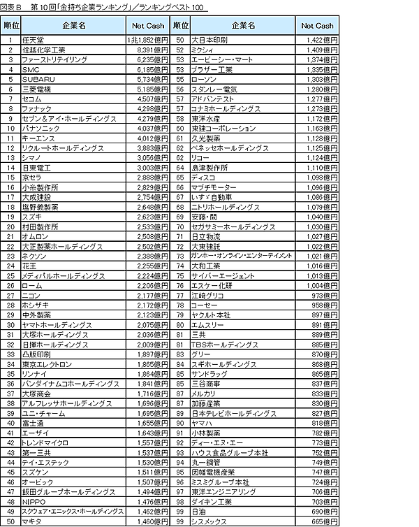 金持ち企業、やはり1位は不動の任天堂