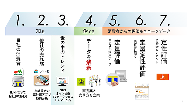 飲食店や小売店での話題の商品やメニューの取り扱い有無や伸長率を捉え、「メディアで話題になっている商品がどこで取り扱われているのか」や「その商品に参入すべき時期はいつなのか」など変化の速いトレンドを補足する。コロナ禍の外出自粛や在宅勤務でライフスタイルの様変わりに直面した小売や外食業界は、市場分析や競合調査、商品企画や開発、出店開発などに活用できる。