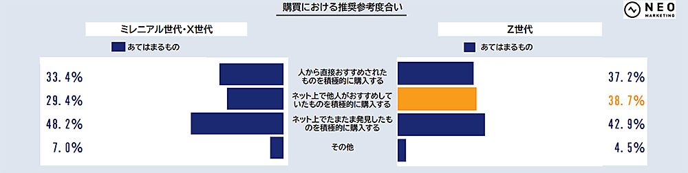 Z世代は「ネット上で他人がおすすめしていたものを積極的に購入する」