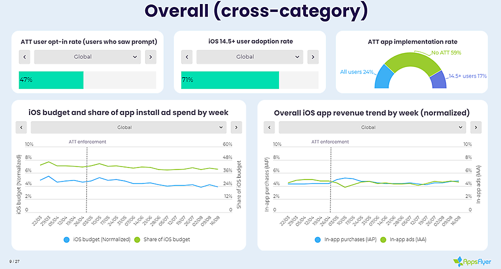 AppsFlyerは、Appleの「iOS 14」と「ATTフレームワーク」に関するレポート「ATT Dashboard」を発表した。
