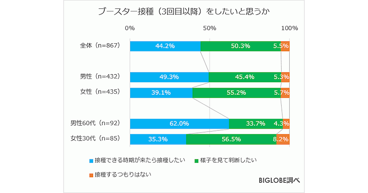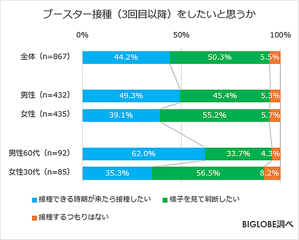ブースター接種「したい」より「様子を見て判断」が上回る