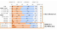次に「会社が副業を認めることに賛成」「自分で副業をしたい」「今の仕事よりやりたいことがあれば、すぐにでも今の仕事をやめたい」と、副業関連の3項目について質問すると、こちらは一般社員>管理職層>経営層の順に「はい」が多い。「会社が副業を認めることに賛成」はすべての立場で6割を超える。一方、立場の違いもあるが「自分で副業をしたい」は一般社員68.0%に対し、経営層は39.7%に留まる。自身が副業をするかどうかは別として、一般社員が副業にかなり前向きであることは、経営層は意識しておくべきだろう。