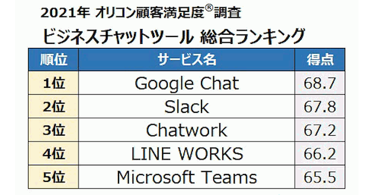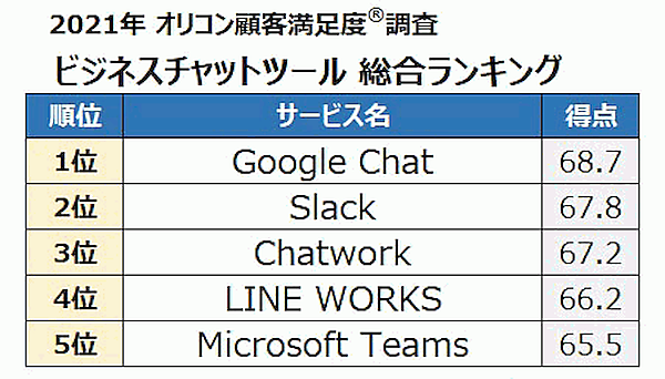 ビジネスチャットツール:満足度総合1位はGoogle Chat