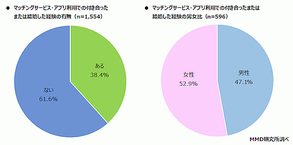 MMD研究所は、「マッチングサービス・アプリに関する最新調査」の結果を発表した。予備調査でスマートフォンを所有する20歳~49歳の独身男女10,000人、本調査でマッチングサービス・アプリ利用経験者500人から回答を得ている。
