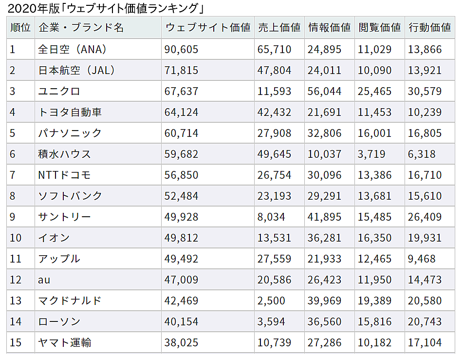 企業のデジタルメディアを評価した「ウェブサイト価値ランキング」、1位は前年に続き「ANA」【トライベック調べ】