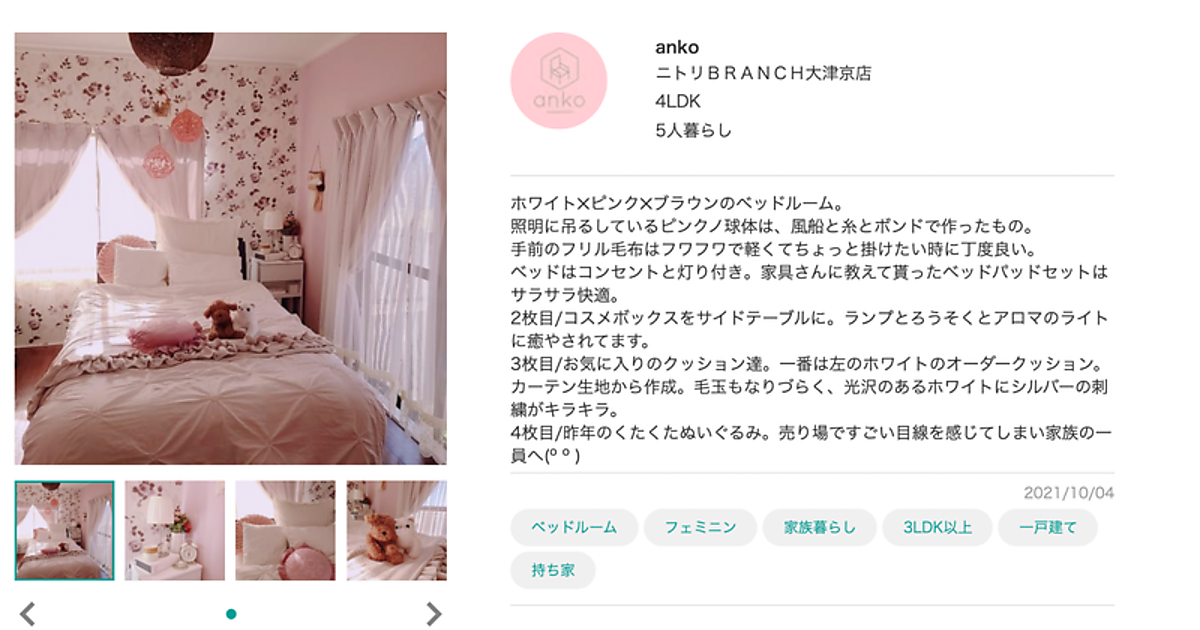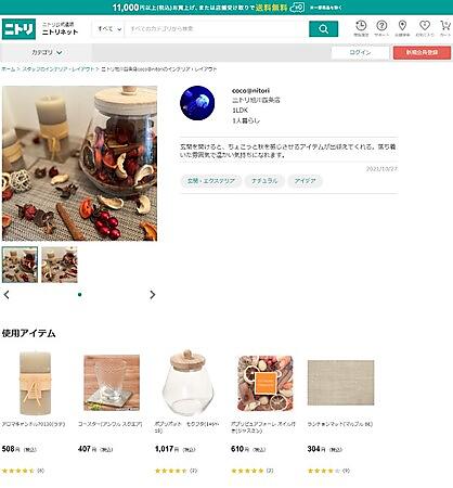 ニトリは、コーディネート提案に力を入れていることからスタッフコーディネートを10月21日に公開した。顧客のSNSへの投稿をコーディネートの参考するケースが多いことも背景にある。部屋の画像と併せてコンセプトやコーディネートのポイント、使用商品が一覧で確認できる。気に入った商品のページに移ると同じ商品を使う他のコーディネートが見られる。