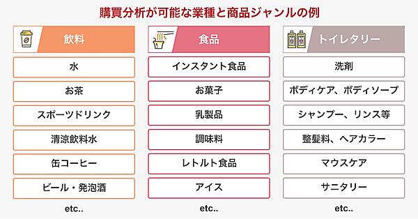 対象媒体はインターネットラジオサービス「radiko(ラジコ)」、音楽ストリーミングサービス「Spotify(スポティファイ)」、データ連携したラジオ局など。分析できるのは、高頻度で購入され、購入率の高い商品ブランドで、水や清涼飲料水など飲料▽インスタント食品、菓子、調味料など食品▽洗剤、シャンプーなどトイレタリー--となる。