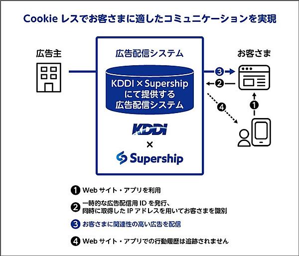 KDDIと、子会社でマーケティング技術事業会社などを統括するSupershipホールディングス、その傘下でDX(デジタル変革)事業のSupershipの3社は、ユーザーのプライバシーに配慮する次世代型の広告配信プラットフォームを共同開発し、2022年1月に提供を始める、と11月16日発表した。ユーザーが同意したデータだけを使い、ライフスタイルに関連性の高い広告が配信できる。