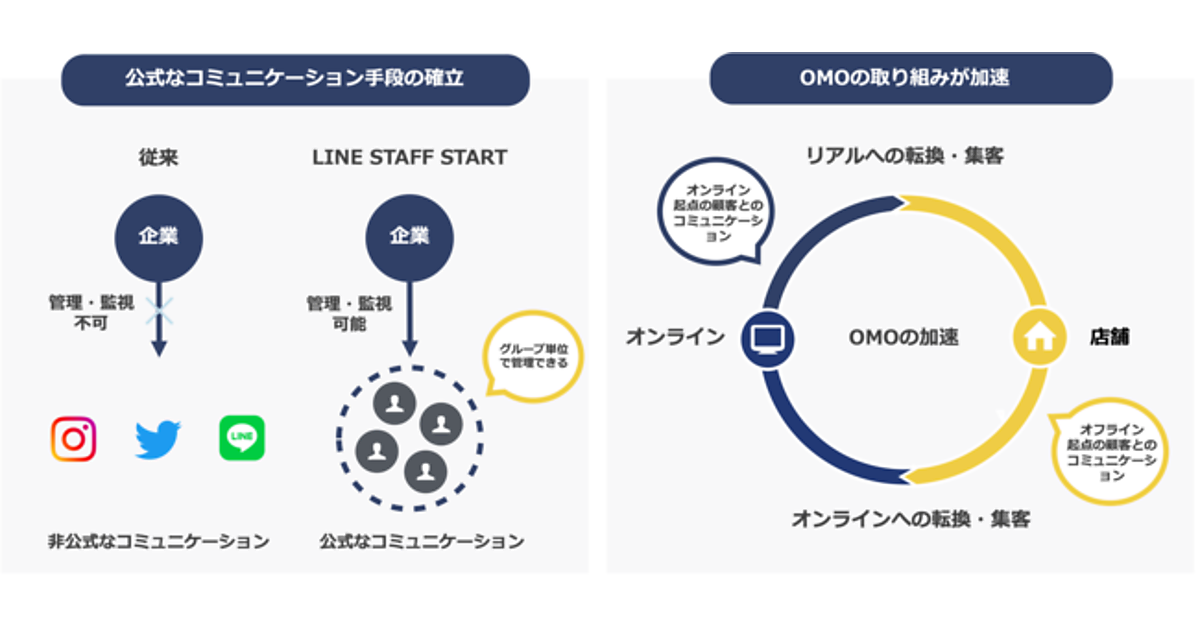 LINE STAFF STARTは、LINEの個人・法人向けアカウントサービス「LINE公式アカウント」と、バニッシュ・スタンダートの「STAFF START」をかけ合せたサービス。LINEで店舗スタッフがキャンペーンなどの情報発信やチャットによる接客ができ、企業はブランド公式ECサイトでどの程度購買につながったかなどスタッフ個人の売上を可視化できる。