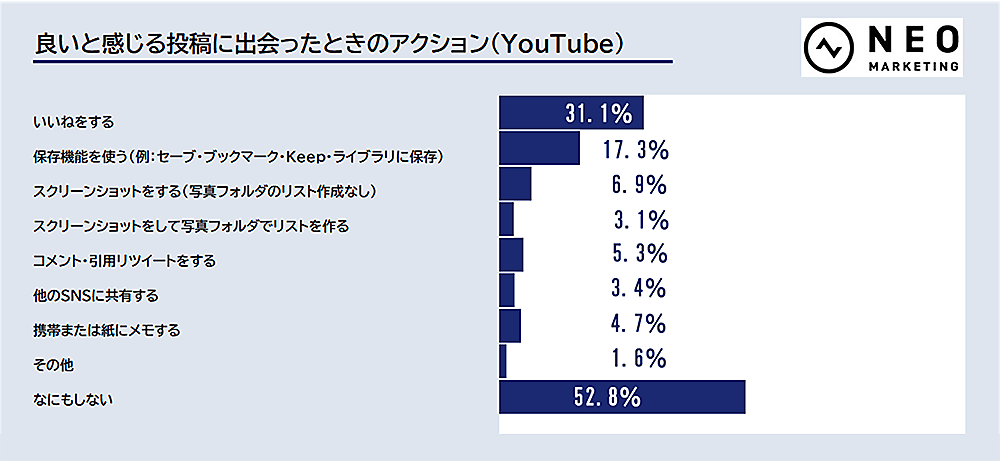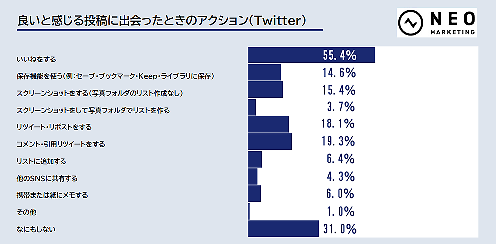 SNSの投稿に対し「いいね!する」という人が圧倒的多数。