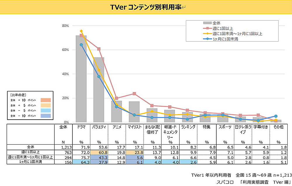 - 【調査方法】インターネットリサーチ(利用実態調査TVer編)