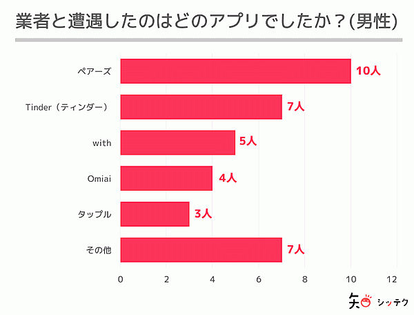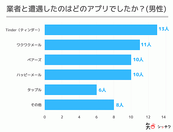 具体的に「業者と遭遇したアプリ」を聞くと、Tinder、ペアーズ、ワクワクメール、withなどの名前があがっている。クリプタルでは、トラブルに遭遇した際には警察や専門家への相談を推奨している。